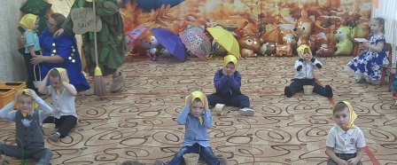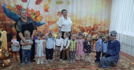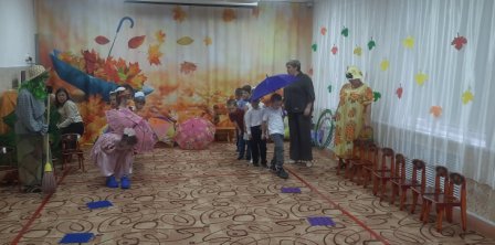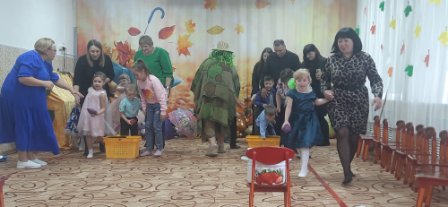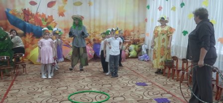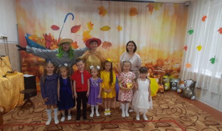 Ребята с нетерпением ждали осенних развлечений, и не зря, ведь они прошли очень весело и интересно. В гости к дошколятам детского сада «Солнышко» пришла Осень со своими осенними друзьями и подарками : рыжая Лисица, Зайка , ну и конечно Огородное Чучело. Яркая и весёлая она водила с ребятами хороводы, играла, загадывала загадки, пела песни и танцевала.