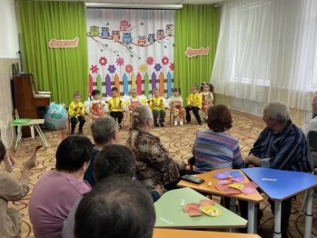 Воспитанники детского сада «Солнышко», а также воспитатели поздравили наших гостей песнями, танцами. Наши бабушки и дедушки приняли участие в развлекательной программе «Угадай мелодию», поиграли в игру «Будем знакомы», отгадывали песни, фильмы, шутили и смеялись.