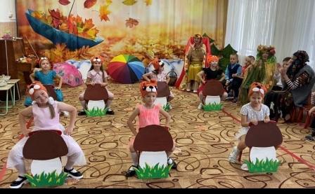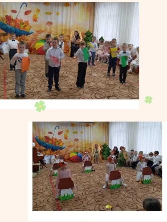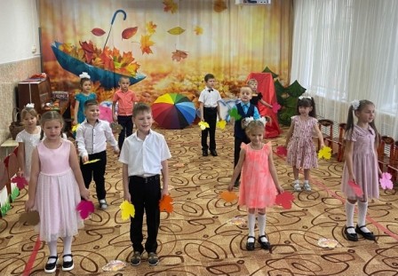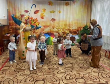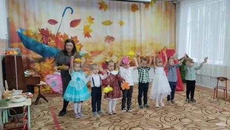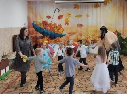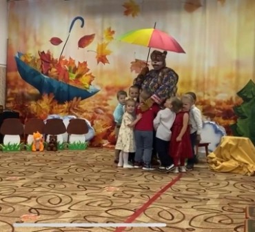 В конце октября в музыкальном зале детского сада «Солнышко» у детей старших и младших групп прошел осенний бал: «Волшебный лес Осени» и «К Мишке в гости». На дворе слякоть и холодно, а у нас царила теплая, доброжелательная атмосфера. В гости к детям пришли сказочные герои: красавица Осень (Позднякова Н.В), Кикимора (Горохова О. Н), веселая Баба Яга (Бушмакина Н.В), и Мишка (Зайцева Е.В. Райхерт С.Г.). Наши воспитанники принимали активное участие во всех номерах утренника: выразительно читали стихи, задорно танцевали, эмоционально исполняли песни и участвовали в веселых играх. Дети были в восторге от данного праздника, так как продумано было все до мелочей: замечательный сценарий, красивая атрибутика, костюмы героев, но самым ярким и запоминающимся эпизодом стал сюрпризный момент – корзина с сочными яблоками для всех ребят, которые в подарок принесла Осень. Праздник в детском саду – это всегда удивительные чудеса, волшебные краски, звонкий смех воспитанников, море улыбок и веселья. Хотя и говорят, что осень унылая пора, но дети, как никто другой, способны радоваться шороху золотистых опавших листьев под ногами, дождику, под которым так интересно гулять под зонтиком, шлепанью по лужам, получая от этого неизгладимые впечатления… Вот поэтому, праздник осени в детском саду является одним из самых любимых у нашей детворы. Воспитанники, как и их родители, получили много позитивных эмоций и впечатлений.
