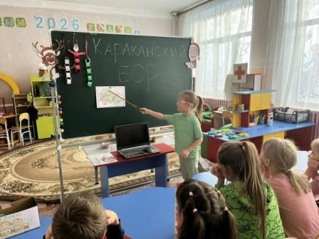 Дети подготовительной к школе группы «Радуга» третий год изучают природу, достопримечательности, историю родного края и знакомятся со знаменитыми земляками. На очередных занятиях ребята узнали о природной кладовой Караканского бора, кто такие плотники и зодчие, посмотрели видео о Сибирской ярмарке. Много ещё нового предстоит детям узнать в детском саду на кружке «Новая Сибирь- мой край родной!»