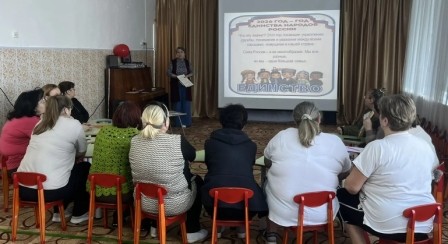 26 февраля в МКДОУ Усть-Таркском детском саду «Солнышко» прошёл семинар по теме «Планирование и организация воспитательных мероприятий с детьми в рамках Года единства народов России» а семинаре педагоги обсудили ключевые моменты в планировании воспитательной работы в тематике Года единства народов России.