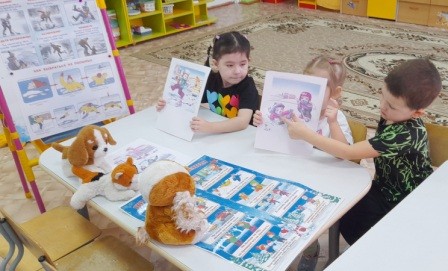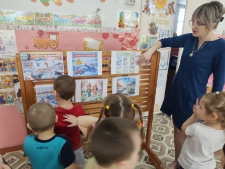 В рамках акции с детьми проводились беседы «Чтобы не было беды, будь осторожен у воды!», «У воды играем – правила не забываем!», а также организован просмотр презентаций и видеороликов «Вода вокруг нас», «Вода и погода», «Осторожно, наводнение!». Ребята с интересом рассматривали картинки, иллюстрации с изображением различных водоемов, проводили опыты с водой: «Волшебная вода», «Тонет – не тонет», знакомились с произведениями русских и зарубежных авторов: Н. Гернет «Хорошая вода», С. Маршака «Ледоход», Т. Бондаренко «Посмотреть на реку».